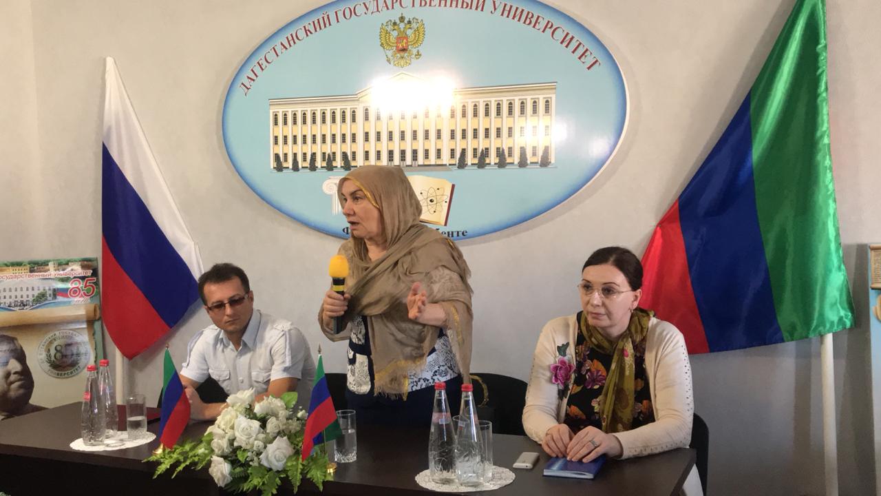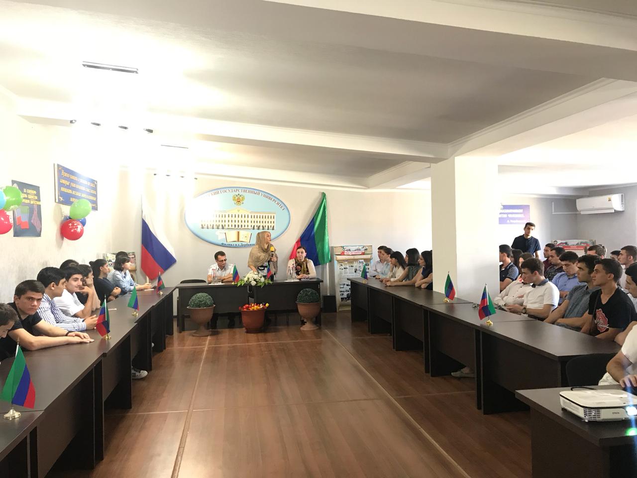 В филиале ДГУ города Дербент сегодня, 14 сентября, прошла литературно-музыкальная композиция "Страна гор-гора языков", посвященная Дню единства народов Дагестана. Студенты 2-го курса филиала ДГУ и колледжа при ДГУ представили первокурсникам песни и танцы народов Дагестана, в которых подчёркивались присущие дагестанским народам черты высокой нравственности, порядочности, храбрости и патриотизма. Перед студентами выступили также гости праздника: главный специалист управления культуры Гюльпери Мирзабалаева и главный режиссер Табасаранского государственного муздрамтеатра Джамбулат Габибов. Они акцентировали внимание на сражении народов Дагестана против захватчиков Надыр Шаха в Андалалском сражении (Гунибский район). Мероприятие завершилось исполнением танцев "Лезгинка" студентами ДГУ и учащимися колледжа.