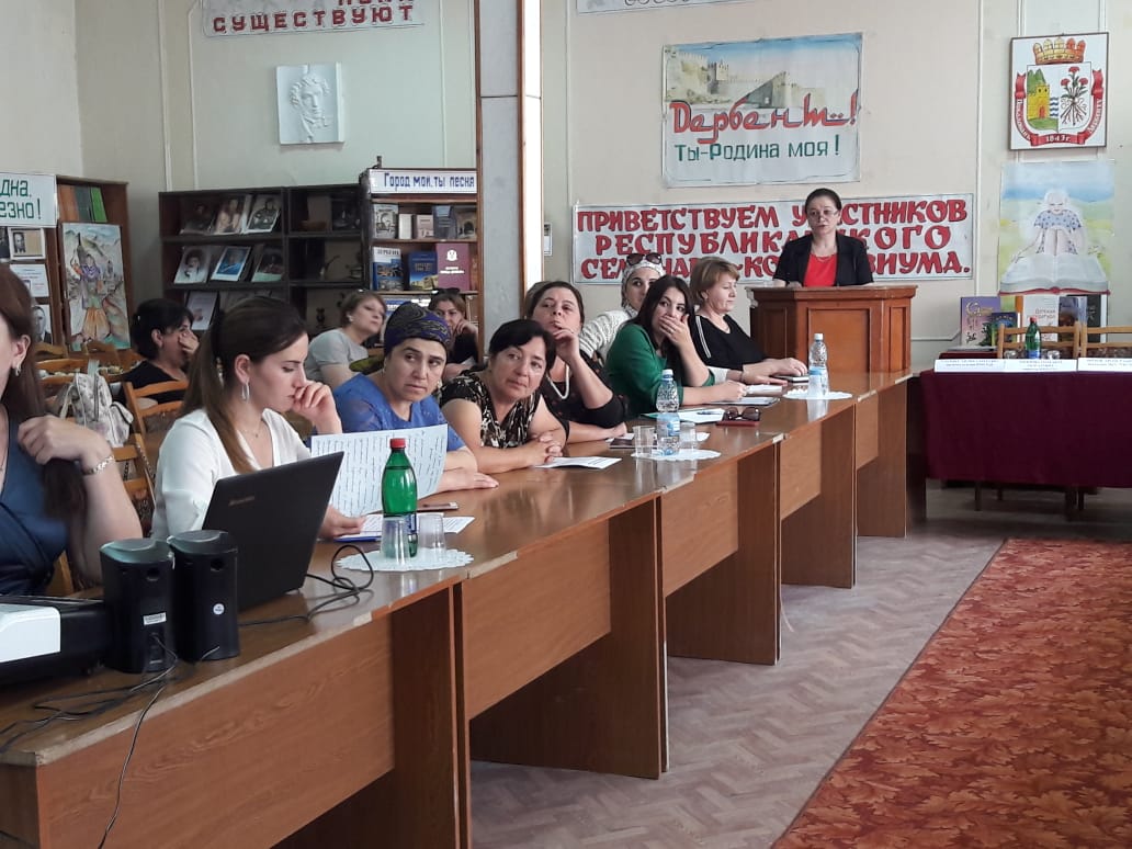 25 сентября в читальном зале ЦБС г. Дербент состоялся семинар - коллоквиум на тему "Национальное многообразие региона и особенности стратегии библиотечного обслуживания детей и подростков". В семинаре приняли участие руководители библиотек городов Изберг, Даг.Огни и Дербент и всех районов Южного Дагестана. Открыла семинар директор ЦБС г.Дербент Диана Алиева. Диана Алиева предоставила слово заместителю главы администрации города Дербент Мехти Алиеву, который поприветствовал гостей и полежал им плодотворной работы. Выступившие с докладами Атлуханова М.С., Хавчаева Х.О., Алиева Д.Г. акцентировали внимание присутствующих на сложностях работы библиотек в современном обществе и о задачах и методах привлечения молодежи и юношей в библиотеки, привитие им интереса к чтению книг. Все выступавшие работники библиотек районов рассказалио формах работы с молодежью, о сотрудничестве с различными общественными организациями, органами власти в сложной работе духовного воспитания молодежи. Итоги семинара подвела в своём выступлении главный специалист управления культуры Гюльпери Мирзабалаева. Она подчеркнула важность работы библиотек и сравнивала деятельность работников библиотек со светом лампады.