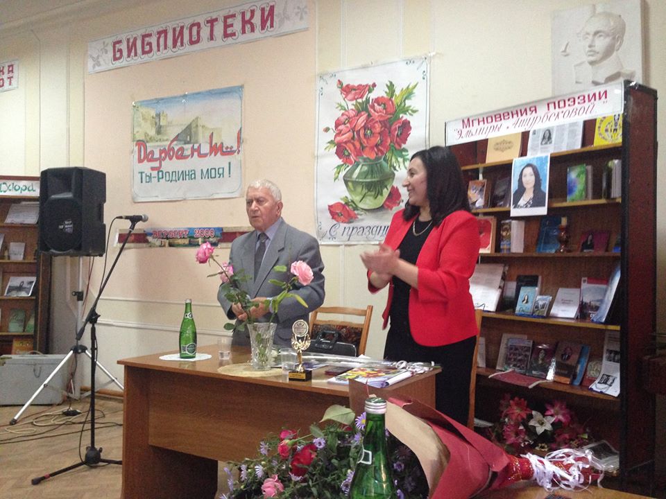 От имени Управления культуры, спорта, молодежной политики и туризма администрации города Ругия Касумова поблагодарила поэтессу за сотрудничество, активное участие в мероприятиях, проводимых Управлением, и вручила поэтессе награду «Женщина года». Она подчеркнула, что Эльмира Ашурбекова не только талантливая поэтесса, но и прекрасная мама троих детей – отличников, за воспитание которых по итогам 2016 года была награждена медалью «Лучшая мама», которую вручил ей глава города Дербент.