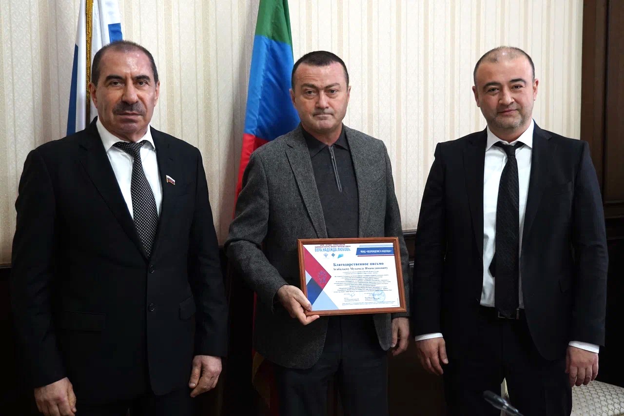 Благодарственное письмо депутата Госдумы Хизри Абакарова, в котором выражается
